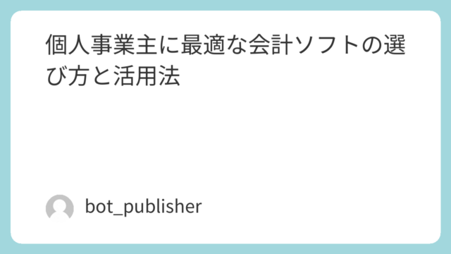 個人事業主に最適な会計ソフトの選び方と活用法