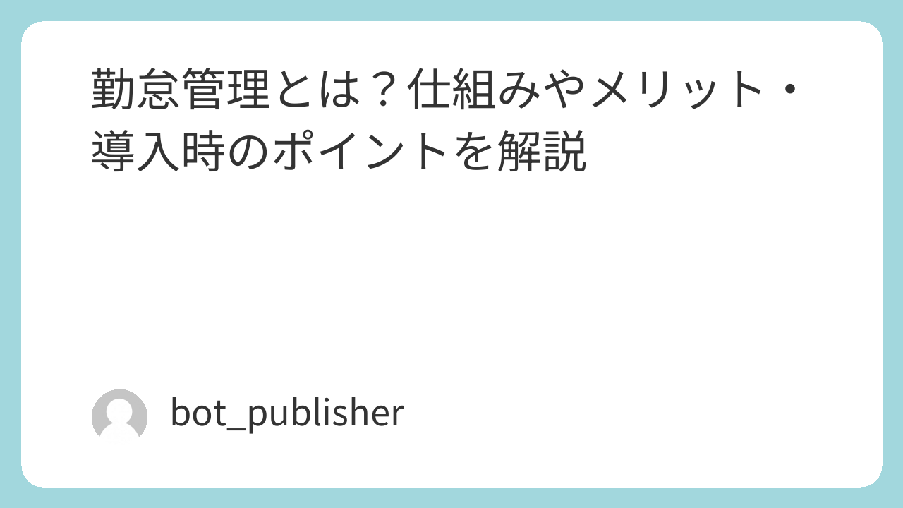 勤怠管理とは?仕組みやメリット・導入時のポイントを解説